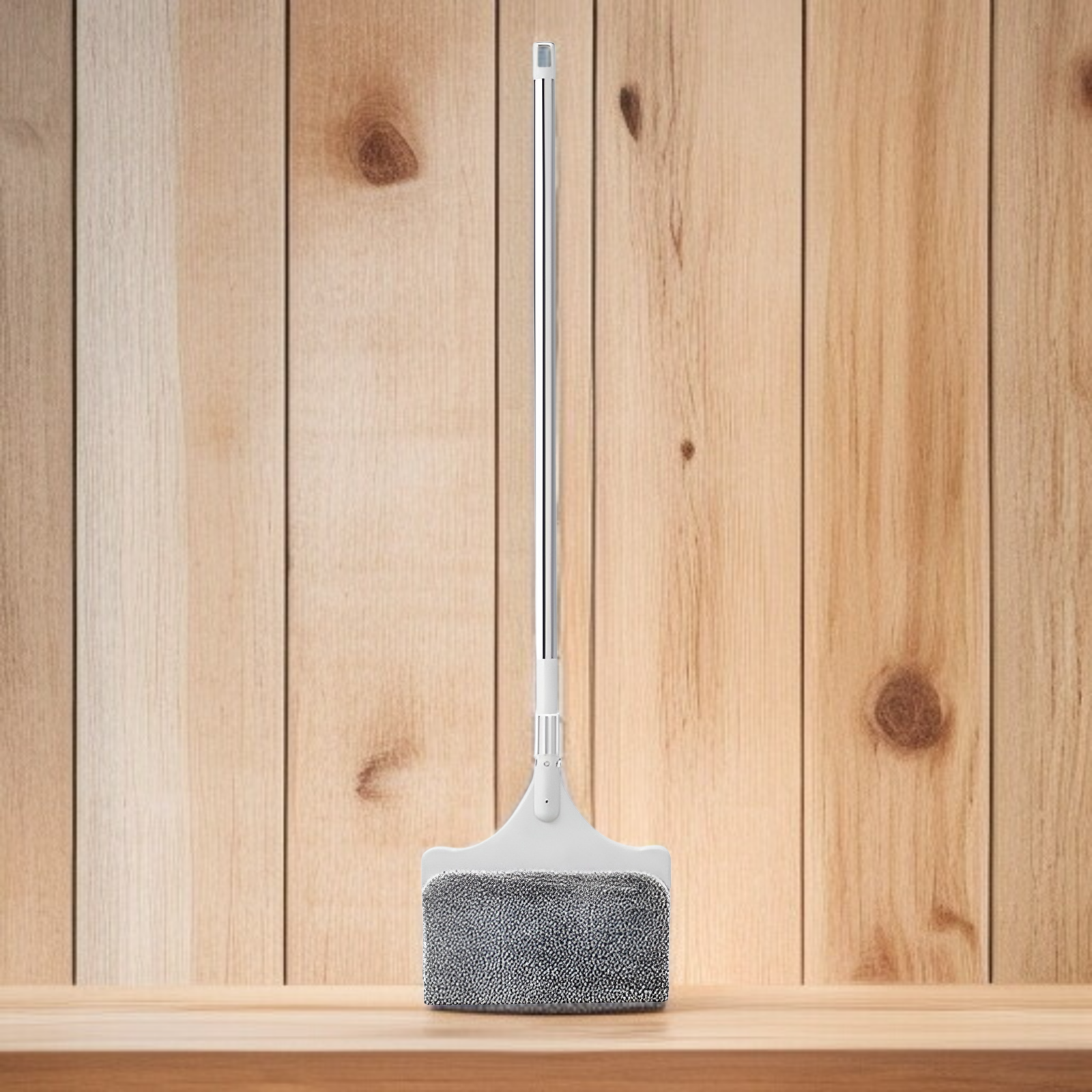 伸縮式で高所も簡単掃除。両面モップ設計でガラスや窓、天井にも対応。家庭用で使いやすく効率的な清掃が可能。
